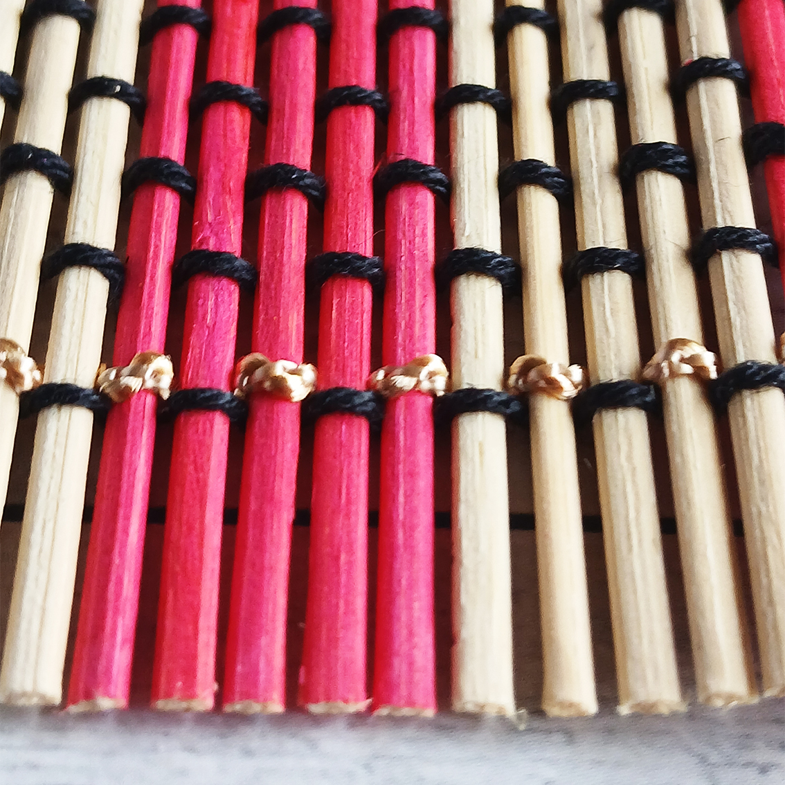 Бамбуковые рейки делают поверхность коврика текстурной и приятной на ощупь. А натуральный материал создает уют и добавляет теплоты.